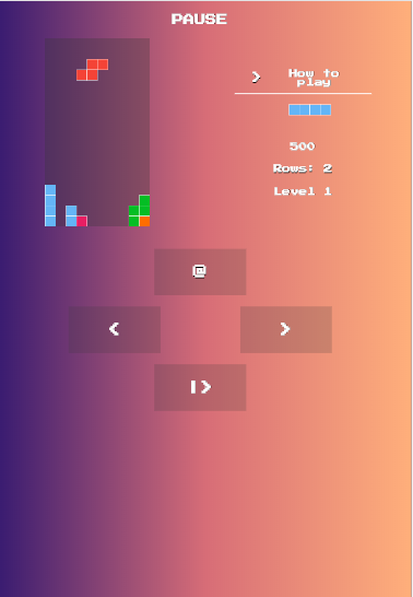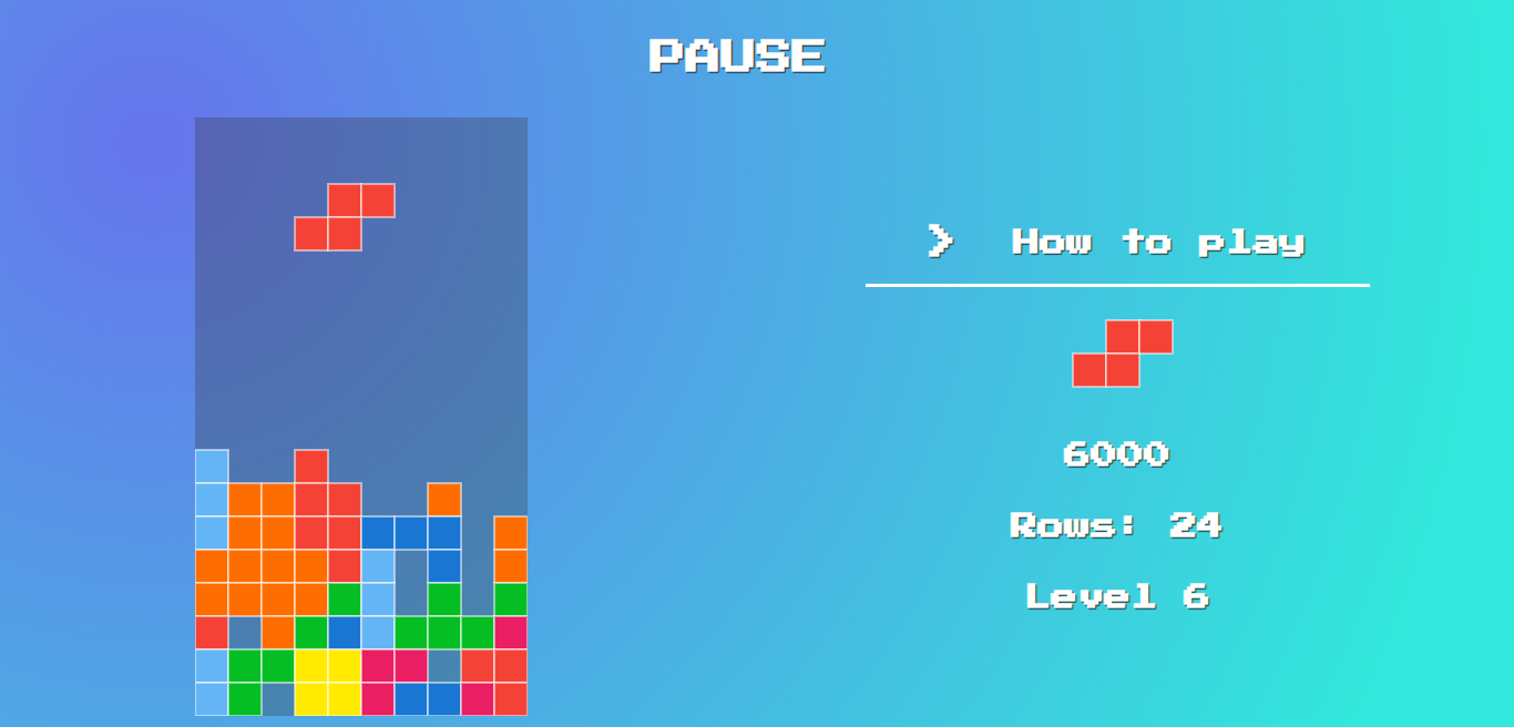 El juego cuenta con varios niveles y registra los puntos ganados por las filas eliminadas.